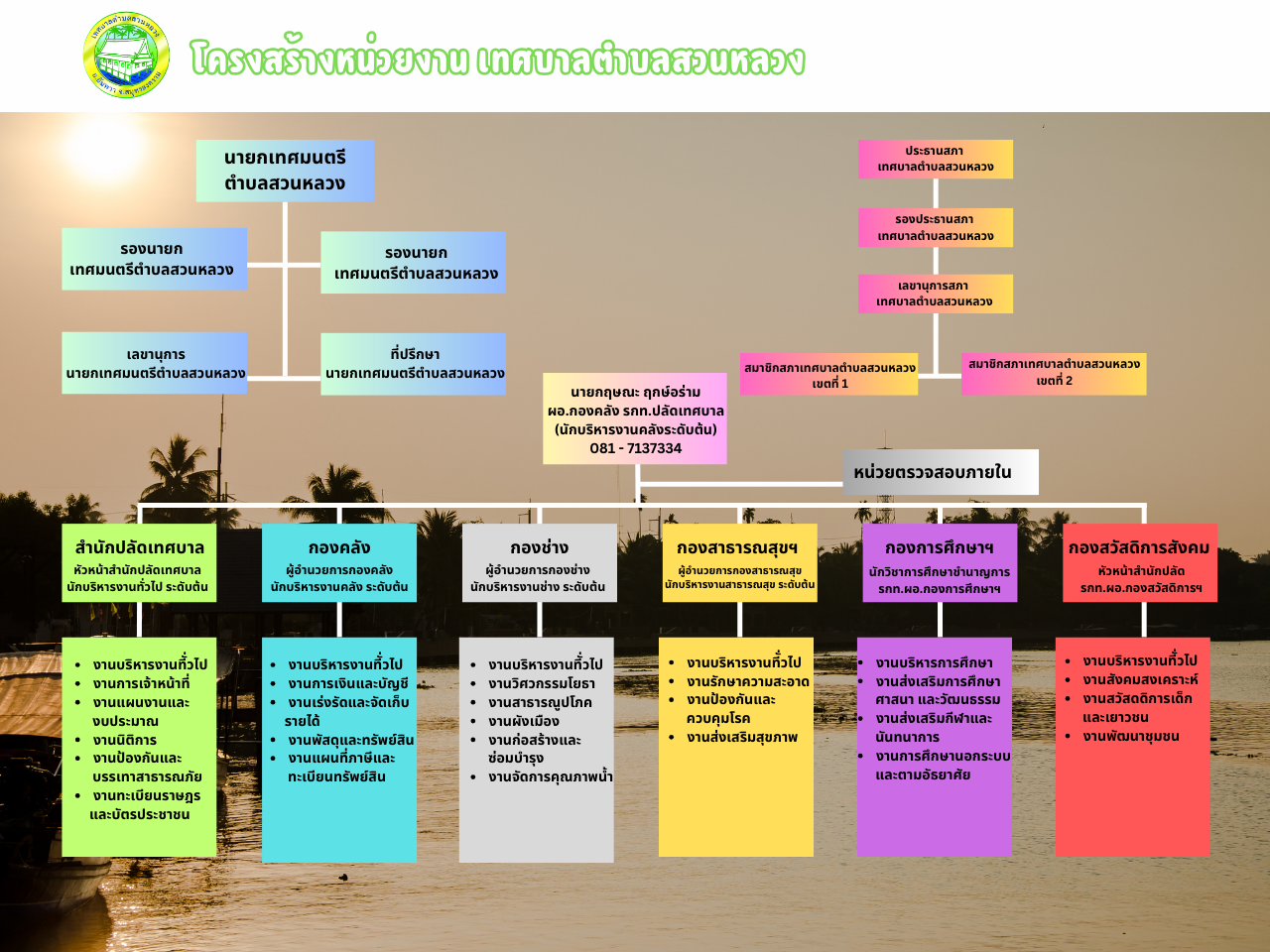 เทศบาลตำบลสวนหลวง เลขที่ 99 หมู่ 15 ตำบลสวนหลวง อำเภออัมพวา จังหวัดสมุทรสงคราม 75110 โทรศัพท์ : 0-3473-2623 โทรสาร : 0-3473-2623 E-mail : sarabun@suanluangcity.go.th