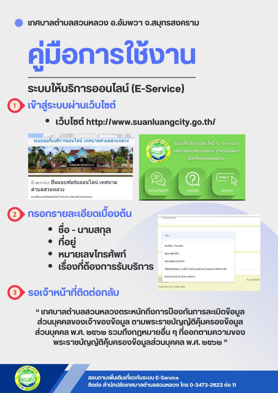 ลิขสิทธิ์ © 2566 เทศบาลตำบลสวนหลวง สงวนไว้ซึ่งสิทธิทั้งหมด.